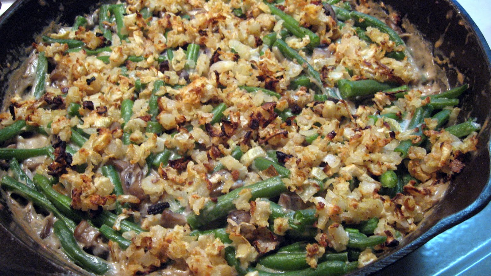 This casserole tasted amazing. It's like I'd never had green bean casserole. It's made from fresh ingredients, so you don't ingest all the chemicals in funyuns or in canned cream of mushroom soup that would be in the traditional version (not that there's anything wrong with that version!). But that means there's heavy cream and a lot of it in this recipe. I'm glad we could take it somewhere that everyone could have some without us having tons leftover.
